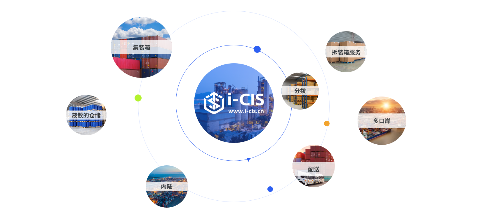 多口岸、内陆,集装箱、液散的仓储、配送、分拨、拆装箱服务